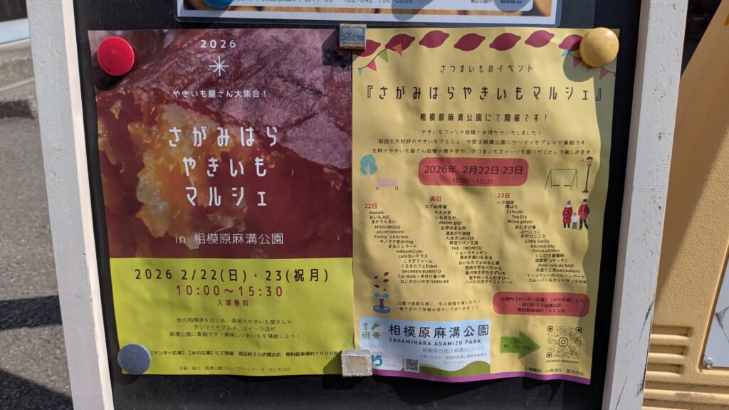 - 中央区 2月22日(日)と23日(月・祝)、麻溝公園で ”さがみはらやきいもマルシェ” が開催です。