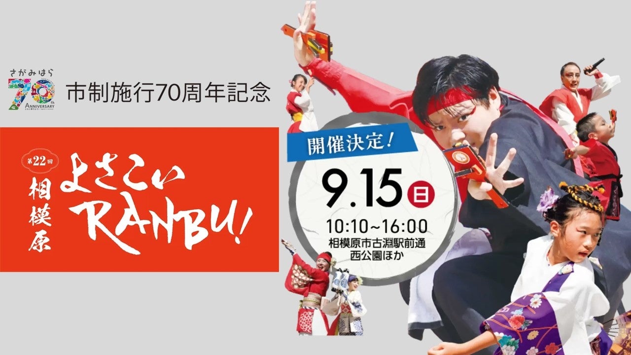 相模原市役所のプレスリリース(2024年9月11日 14時40分)【相模原市南区】市制施行70周年記念「第22回相模原よさこいRANBU!」を開催します!
