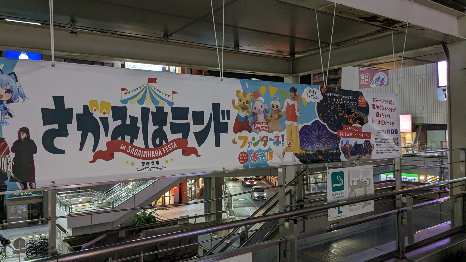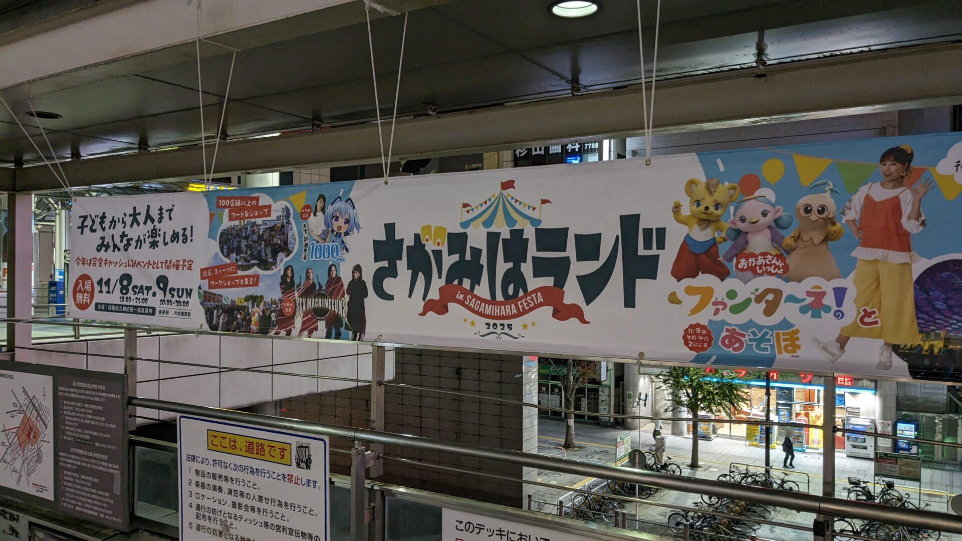 相模大野の駅前にも同イベントの横断幕が掲示されていました。”さがみはランド” という名称で、各種ステージの告知になっていました。