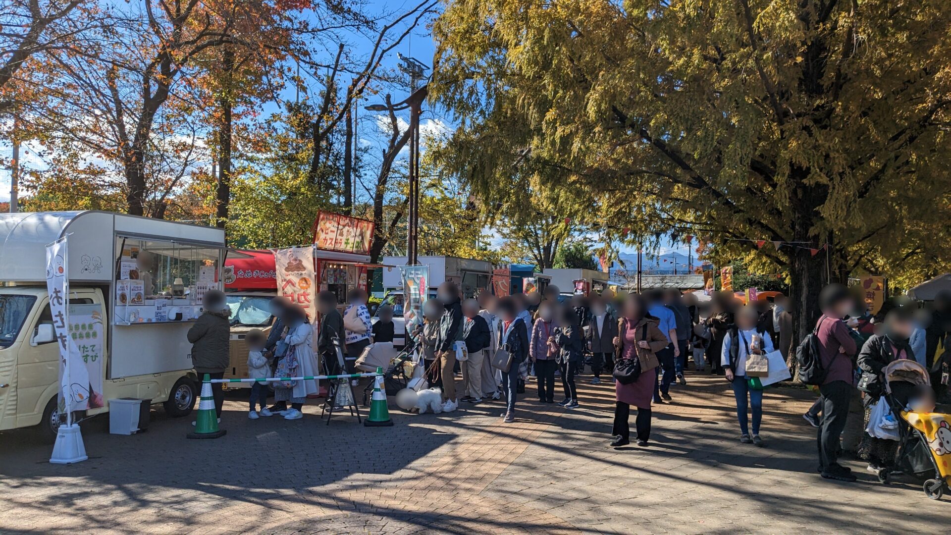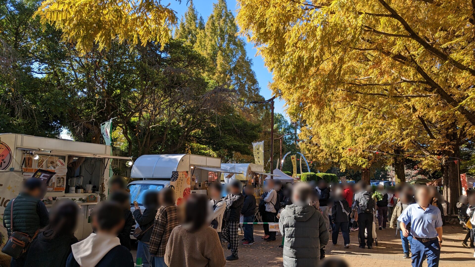 各日40 もの出店者がメタセコイア並木に集まって、キッチンカーやブースで商品販売等が行われるイベントです。以降の写真は昨年の同イベントのものですが、かなりの盛況でした。