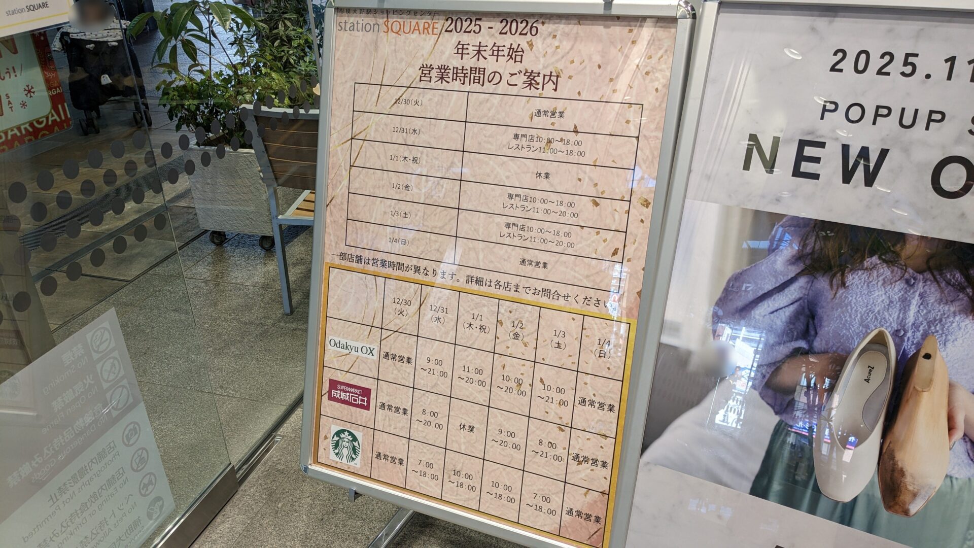 「相模大野ステーションスクエア」は「Odakyu OX」さんや「スターバックス」さん以外は1月1日は休業のようです。