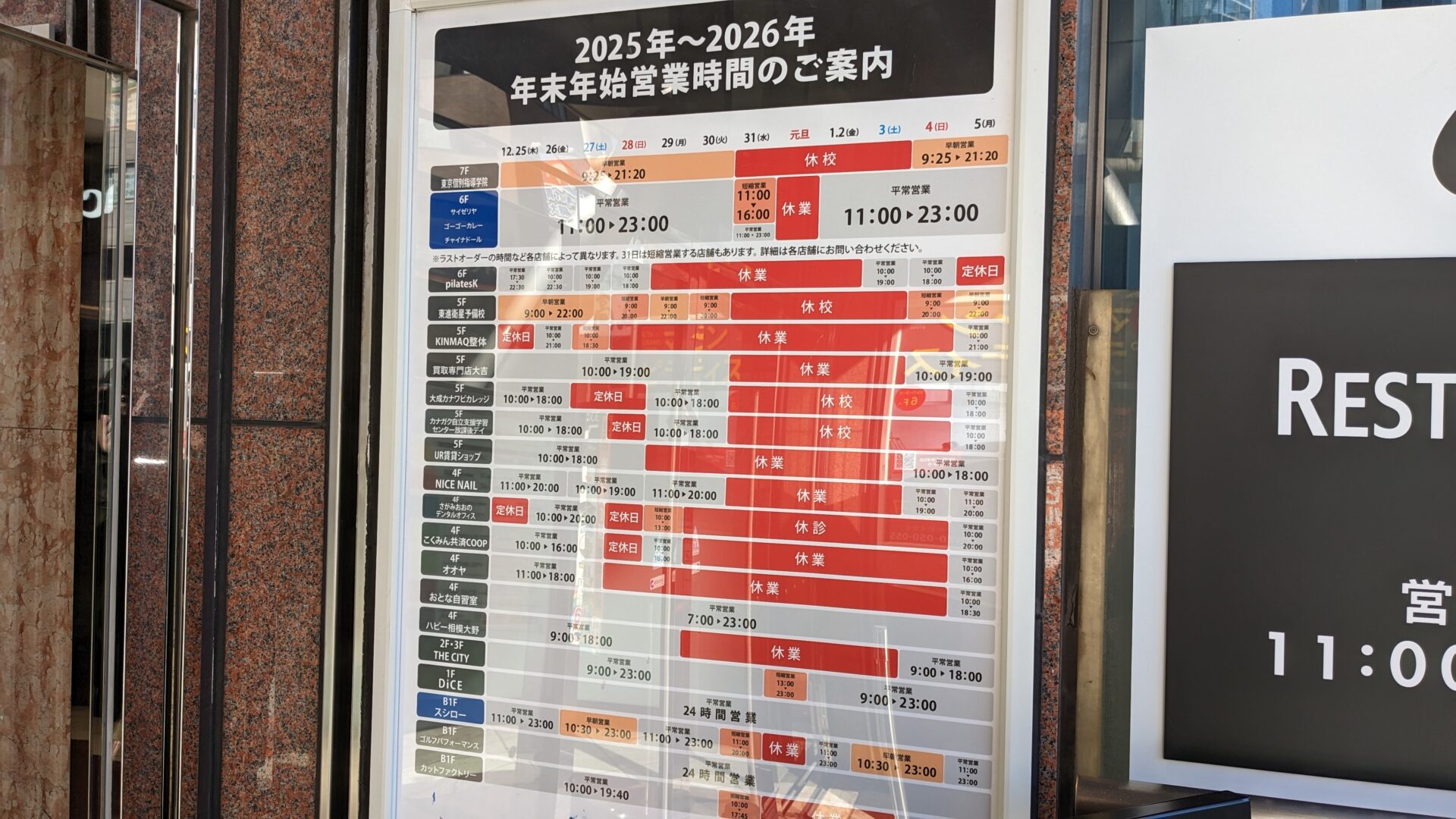 「セレオ相模原」は1月1日が全館休業となるようです。