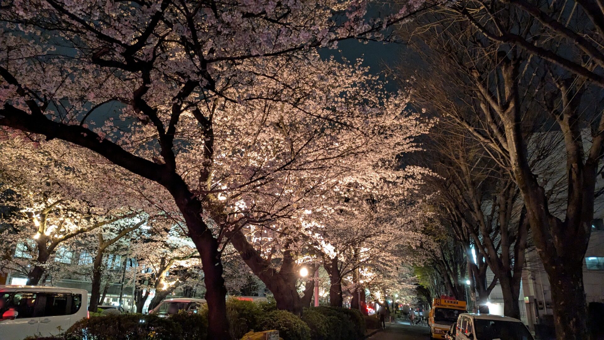 さて、市役所周辺の桜ですが、4月3日(金)までライトアップが実施されていて、その様子を見に昨日行ってまいりました。多くの方がスマホにその姿を収められていました。