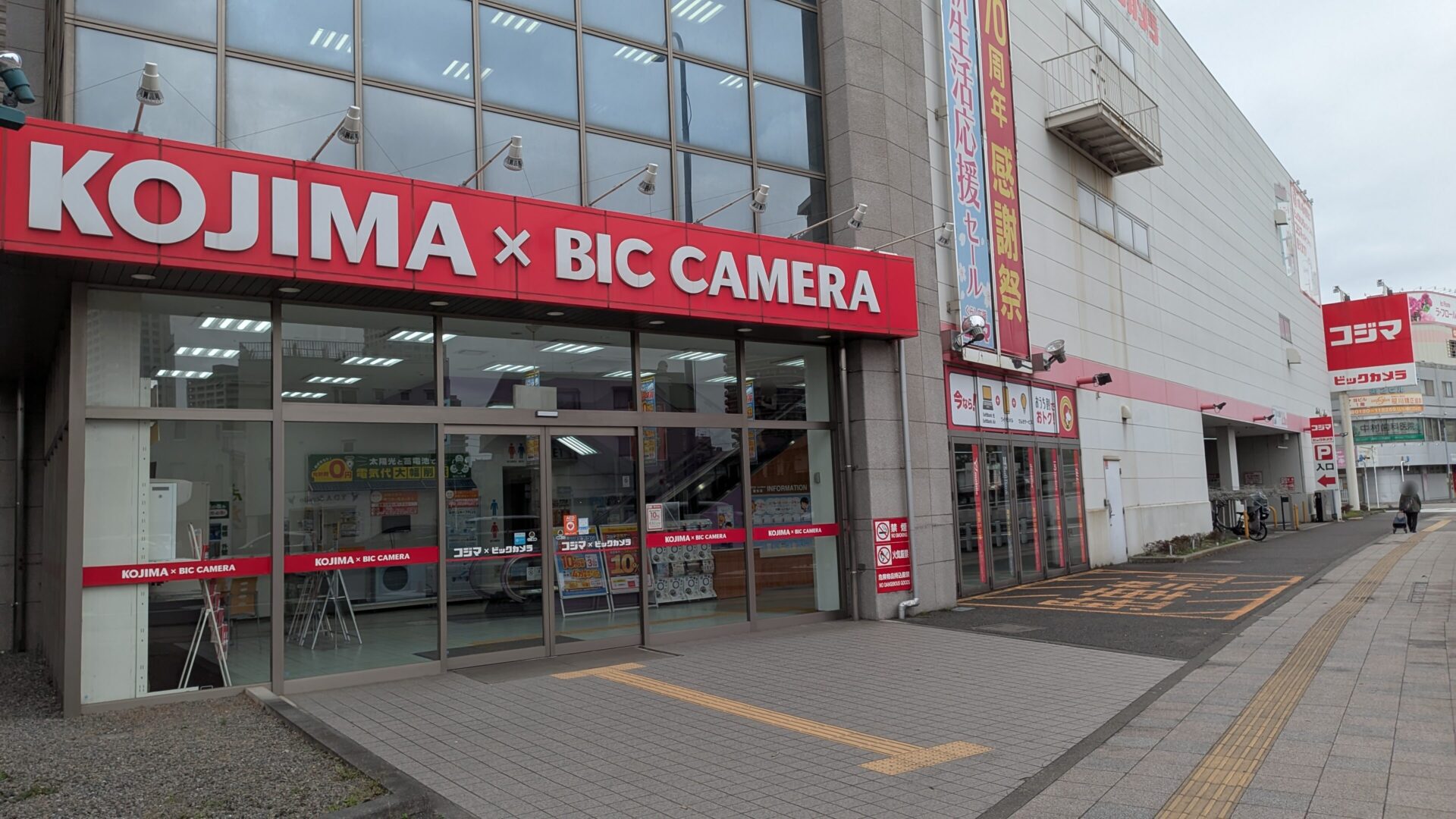 大き目の看板には新たに「コジマ×ビックカメラ」さんの名称が確認できます。もう1テナント、何か告知できそうなスペースがありますね。