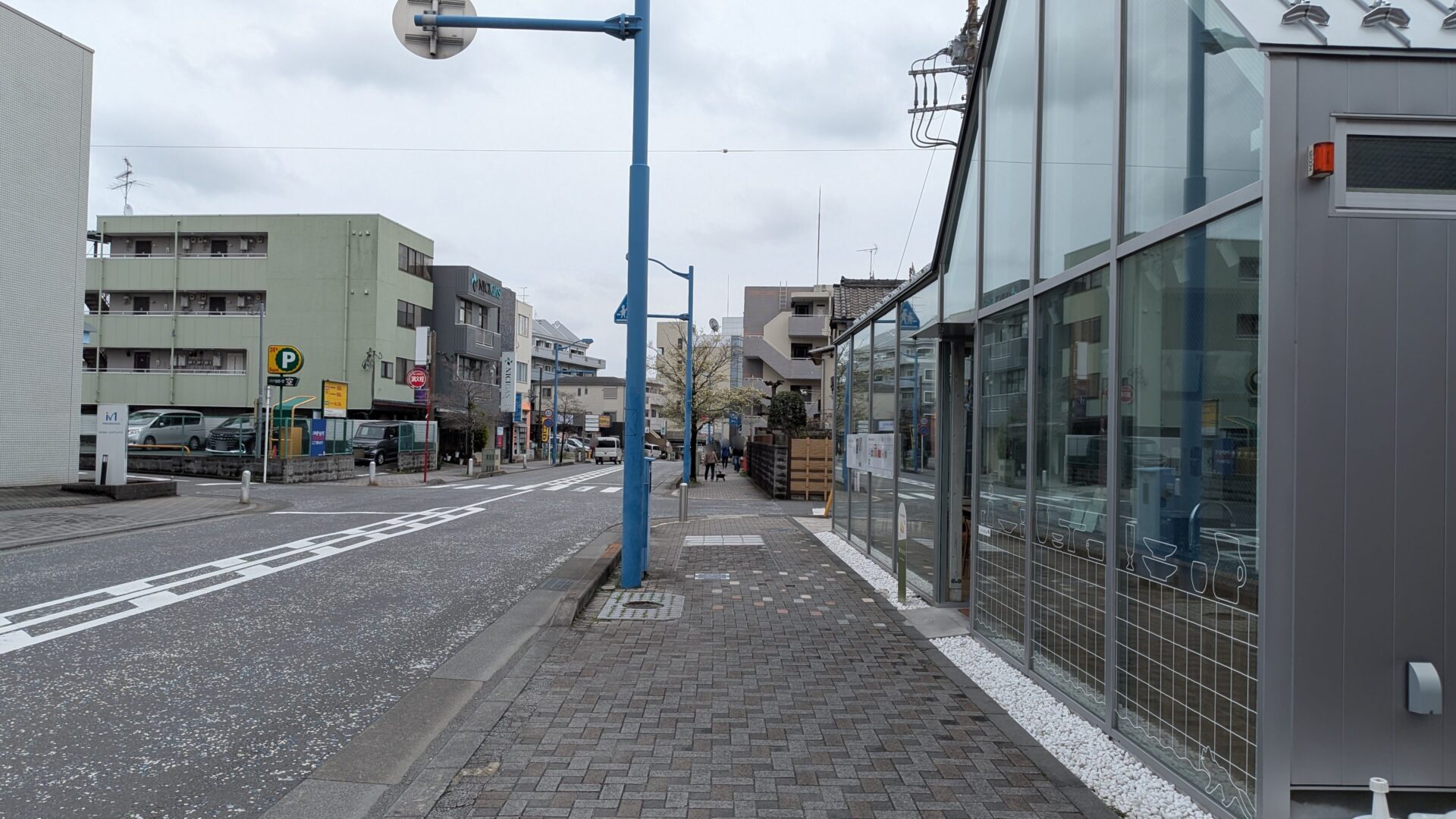 周辺の様子です。シェアスペースの「フチノベース」さんを右手に見て、「エスポット」さん方面へ進みます。