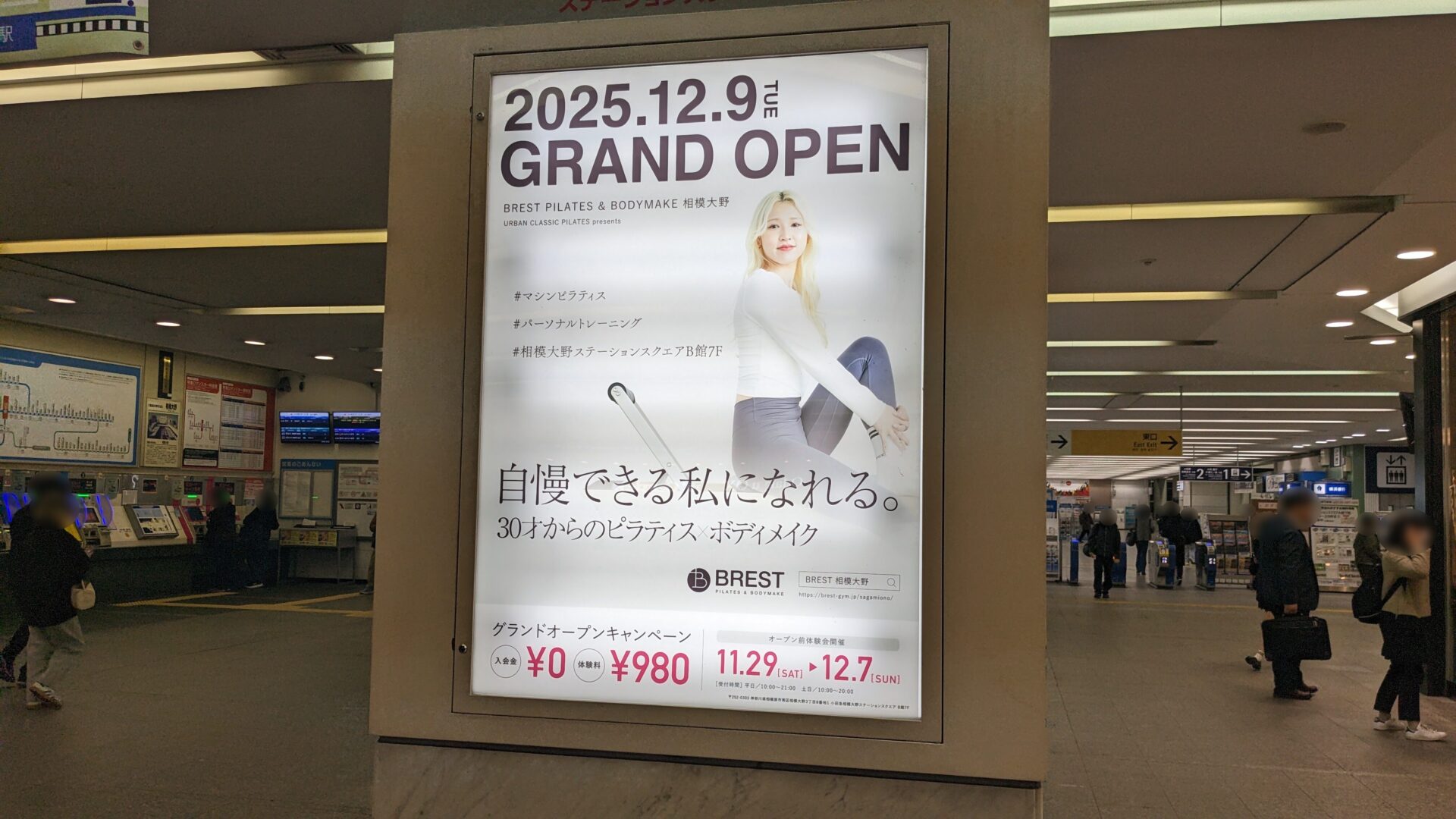 12月9日(火)、相模大野ステーションスクエアの7階に「BREST PILATES & BDOYMAKE」さんというお店がOPENだそうです。相模大野駅にこんな告知が出ていました。