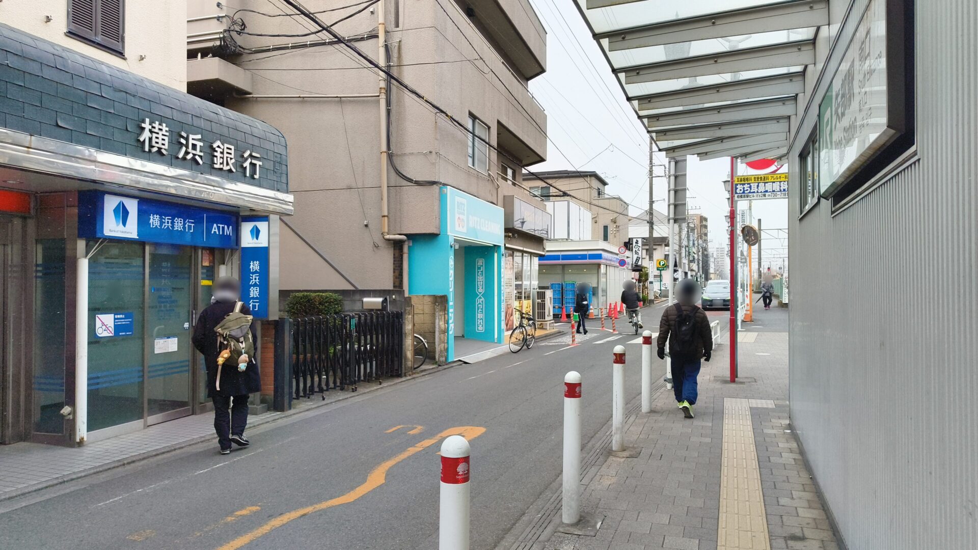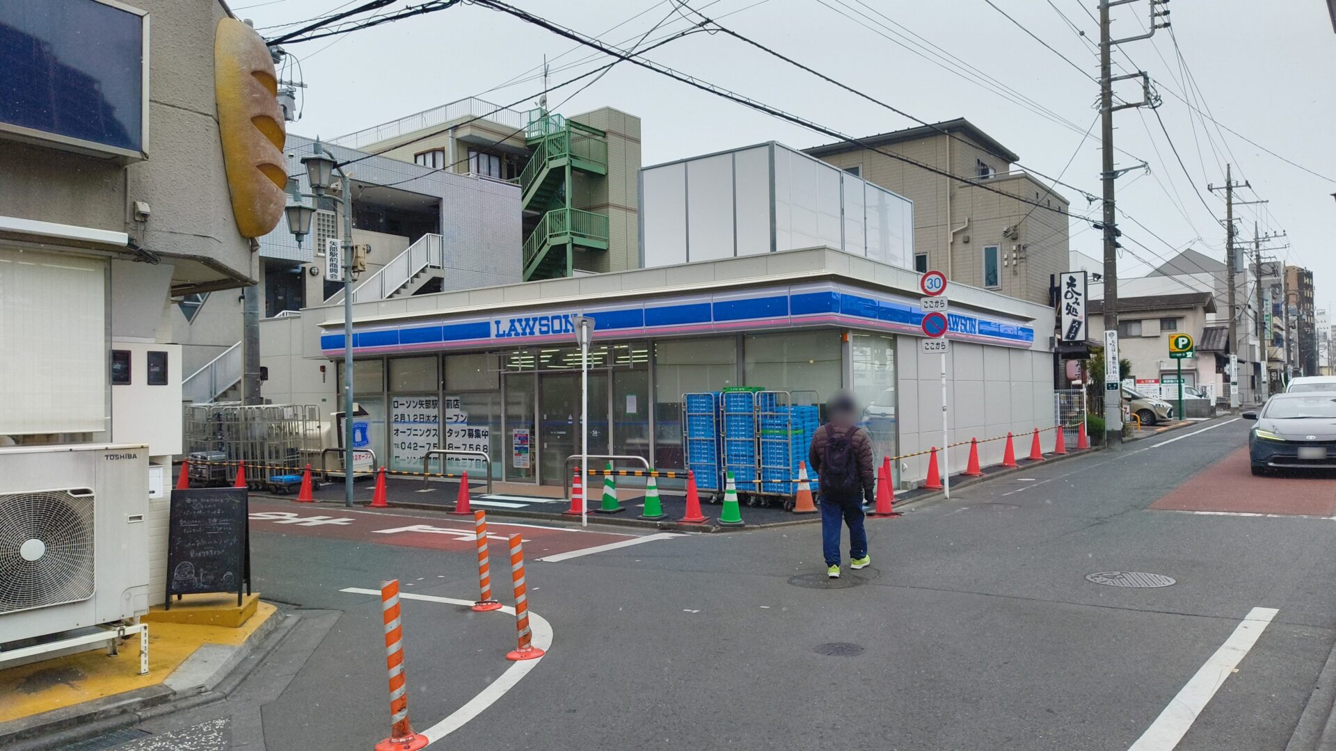 先週のOPEN前の様子で、現地の様子をご紹介させていただきます。矢部駅南口を降りると「ローソン」さんの看板が見えてきます。