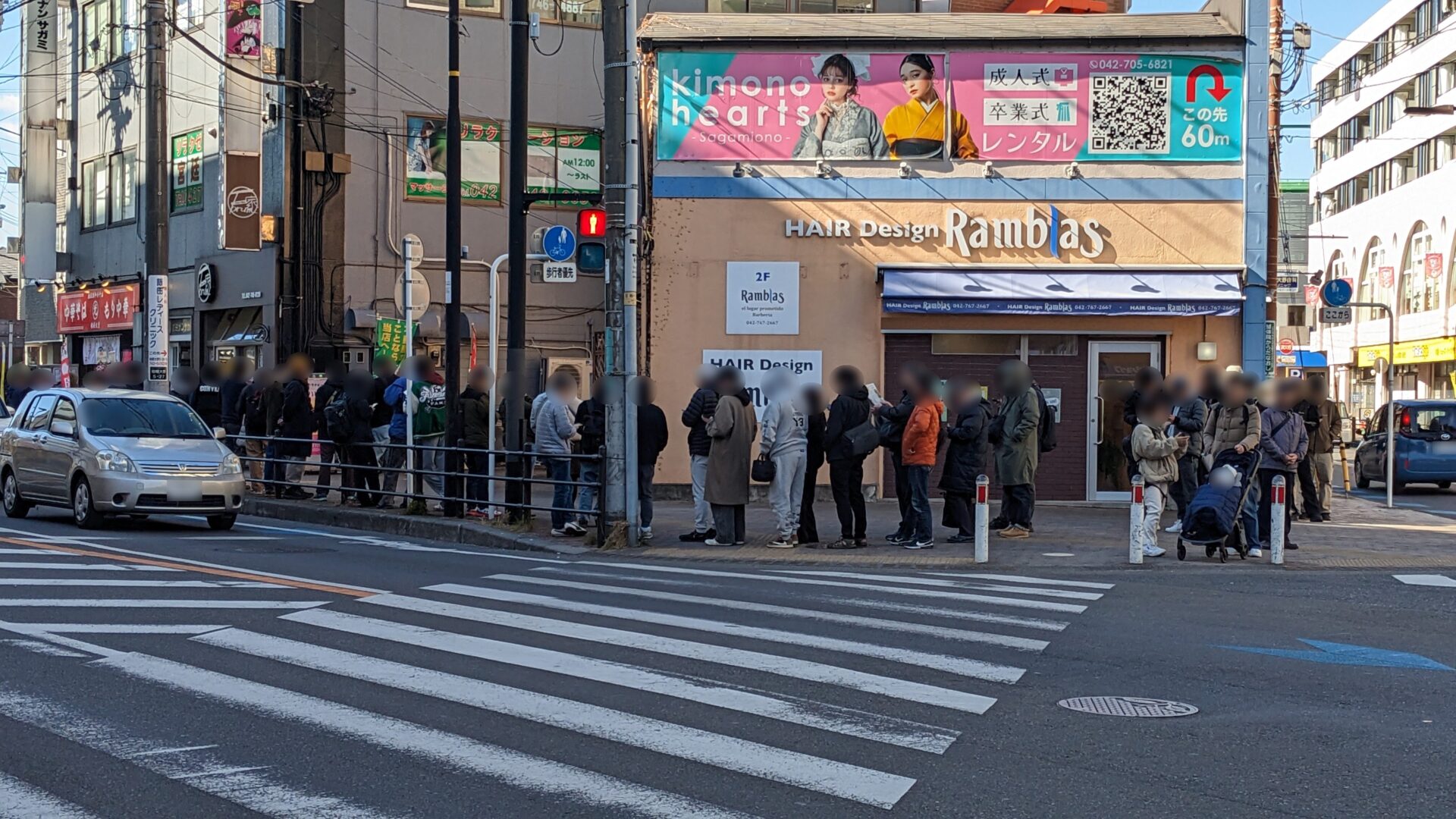 そうして、OPEN初日となる2月1日(日)。開店前からとんでもなく行列ができていました。「e-burgers」さんの近くまで、その行列は伸びていました。