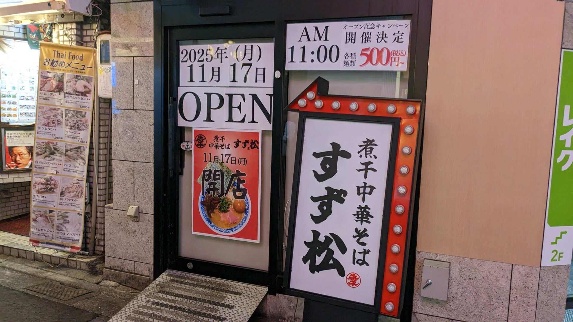 2025年11月17日(月)OPEN という告知と、OPEN記念キャンペーンで 500円 ~ でラーメンが食べられる告知が出ていました。11:00 という掲載でしたが、どうやら 11:30 営業開始になったようです。