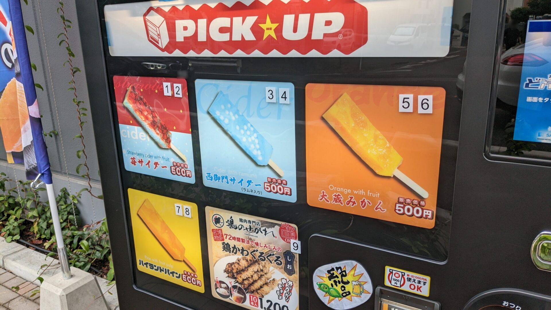 もともと設置されていた黒い自販機も、アイス と 鶏かわぐるぐる のラインナップに変わっていました。